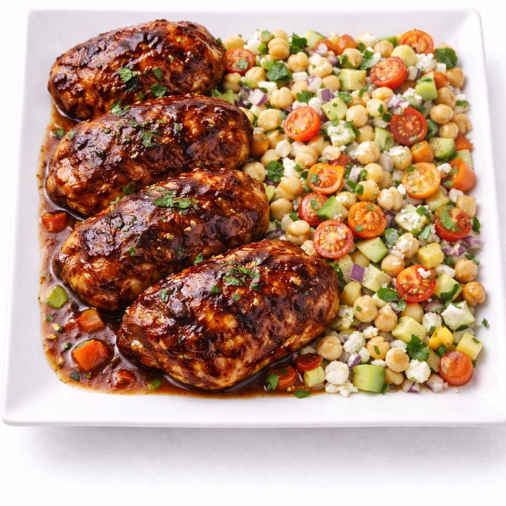 BBQ Chicken Thigh with Mediterranean Chickpea Salad