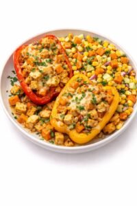 - Baked Stuffed Bel Pepper with Chicken and sweet potato , corn Salad