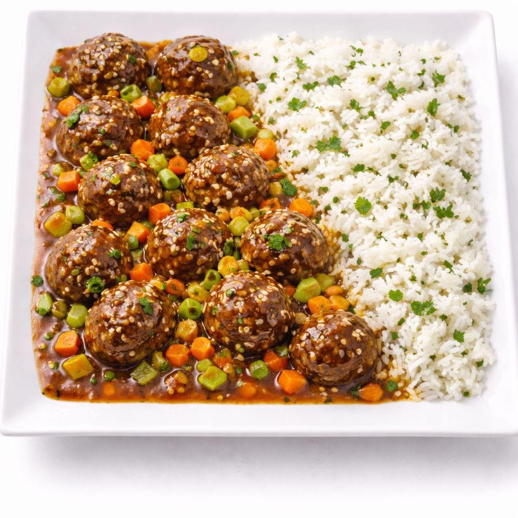 - Hot & Sour Beef Meatballs Served with cilantro White rice and loaded with carrot, celery