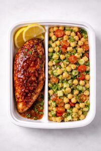 Tender BBQ Chicken Thighs Paired with a Fresh Mediterranean Chickpea Salad