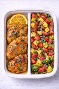 Citrus Glazed Chicken Delight Served with Strawberry and Pineapple Salsa